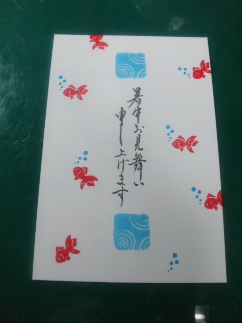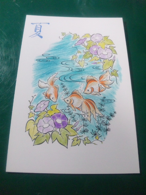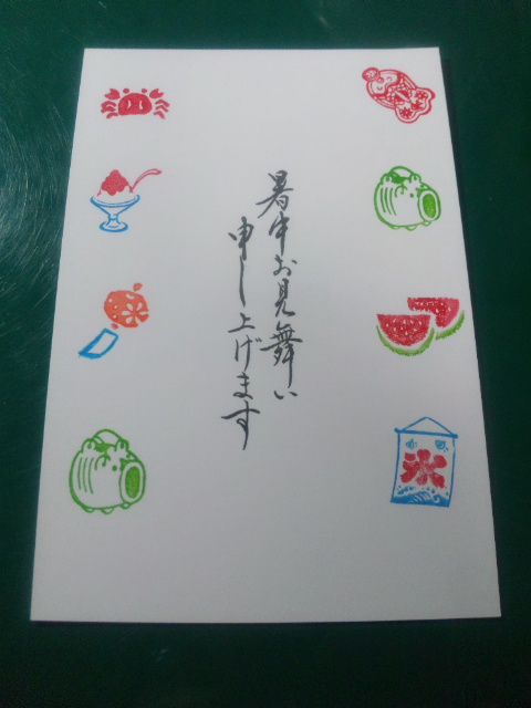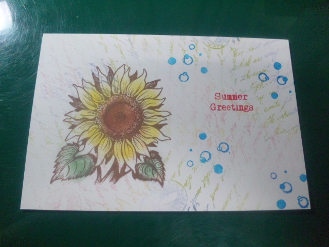 向日葵のハガキはお手本を参考にちょっぴりアレンジ。文字のスタンプ、
