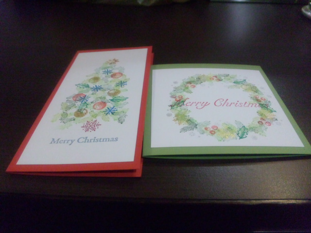 クリスマス用のカードを2種作成しました。ツリーとリース。ツリーを